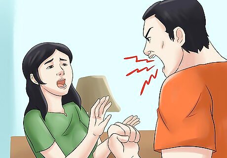 Avoid escalating the situation. Although it is a myth that victims are the ones provoking domestic violence in the first place, if your abuser is being confrontational, try to avoid fighting back. Use your best judgment here, but it may be best to give in temporarily to avoid a more serious violent counterattack. Try to stay under the radar until you can make a plan to leave for good. For example, if your abuser hit you and said that you didn't do the laundry correctly, just try your best to do what either he or she wants, rather than try to take a stand on this particular issue. Instead, focus your energy on staying safe and setting a plan in motion to get out for good.