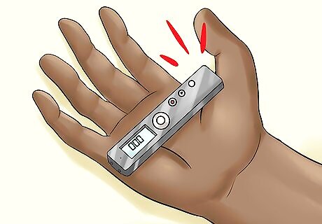 Keep or collect documentation of the abuse. To help prosecute and end your abuser's ability to harm, it's important to take the steps necessary to secure a conviction. Make certain you have a small tape recorder with you at all times. Buy it from a "surveillance" shop and learn how to use it from the sales staff. Turn it on whenever you have a gut feeling of mood swing from the person. Keep batteries fresh. Be sure also to take photos of your injuries and of objects broken during violent outbursts. Place copies of legal/financial documents in your safe deposit box. Do the same for any evidence you have of abuse: photos, diary, letters of apology from your abuser.