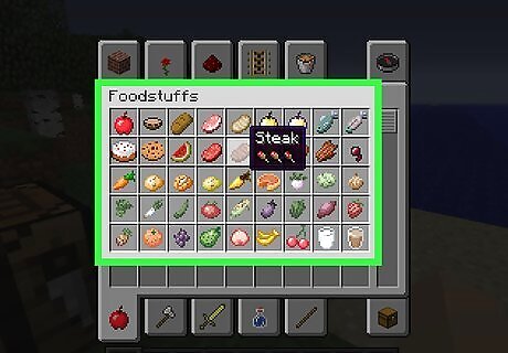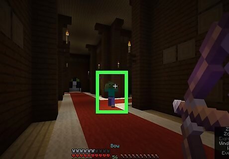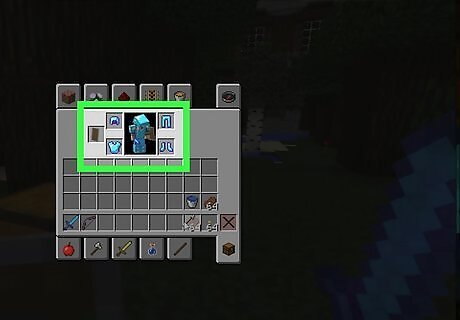 Arm yourself well. Wear enchanted diamond armor. Have an enchanted sword and a bow and arrow at the ready. Good enchantments to have on your armor are: Protection, Unbreaking, Thorns and Mending . Good enchantments to have on your sword are: Mending, Unbreaking, Knockback, Sharpness, and Fire Aspect Good enchantments for your bow are: Power, Punch, Flame, Infinity/Mending, and Unbreaking (Mending and Infinity conflict with each other. Choose which enchantment you want wisely.) NOTE: Mending will work only if you are wearing the item or holding the item in your main hand or offhand. If the item is just sitting in your inventory, Mending won't do anything.