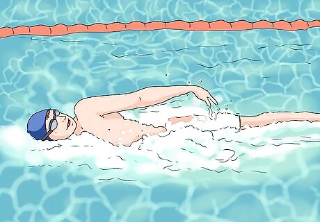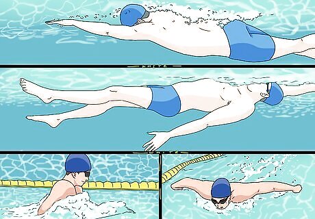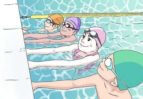 Practice the four major competitive strokes. Nearly all swimming competitions involve one or more of the following strokes: freestyle, backstroke, breaststroke, and butterfly. While you may eventually become a specialist in only one of them, you should take lessons in all four strokes to begin with, and eventually perhaps enter competitions in all of them. Your coaches or instructors will work with you to develop the essential techniques for each stroke. Listen carefully, and plan to swim lots of laps! EXPERT TIP Alan Fang Alan Fang Former Competitive Swimmer Alan Fang swam competitively for over 7 years, through high school and into college. He specialized in breaststroke events, and participated in events such as the Speedo Championship Series, the IHSA (Illinois High School Association) state championships, and Illinois Senior and Age Group state championships. Alan Fang Alan Fang Former Competitive Swimmer Find a coach to critique your form. Alan Fang, a former competitive swimmer, says: "When you're just getting started, it's important to pick out a coach or join a team, because swimming requires a lot of outside guidance. You could be having technical issues with your stroke, but you'll never know until there's someone standing to the side watching you swim.