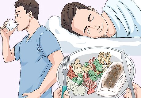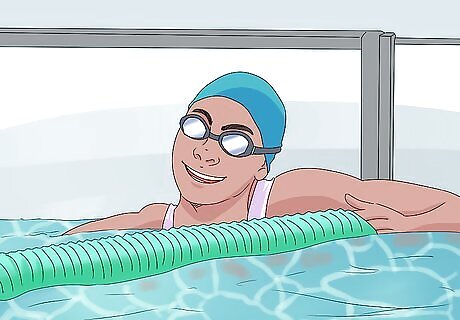 Follow healthy eating, hydration, and sleeping habits. Swimming burns a lot of energy, so a diet that’s rich in nutrient-dense carbohydrates (like whole grains and legumes), veggies and fruits, lean proteins (like chicken), and healthy fats (such as olive oil) is ideal. Basically, a typical healthy diet for the average person is also a good choice for a swimmer. Make sure you drink lots of water before, during, and after practices and competitions as well. The best gauge of adequate hydration is that your urine is light in color. Aim for around 8 hours of solid sleep per night as well.