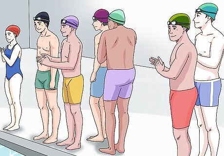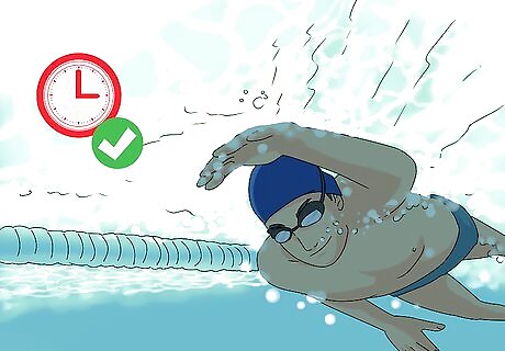 Meet the time standards required to enter competitions. Entry-level competitions may be open to anyone who is a member of an affiliated club or organization, or the public at large. Higher-level swimming competitions, however, usually require you to achieve certain timing standards in order to be eligible for particular races. Keep training, practicing, and working with your coaches until you achieve the necessary standards. Your swimming club will be able to provide you with the timing standards required to enter competitions.
