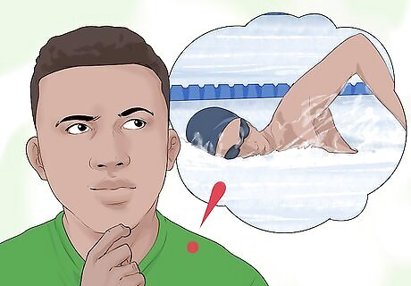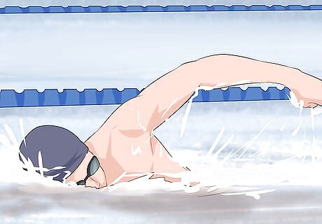 Set realistic expectations for yourself. Swimming is different from other forms of exercise; just because you’re good at running or climbing doesn’t mean that you’ll be instantly good at swimming. If you exhaust yourself you’ll be less likely to swim with proper form and won’t see improvement. Therefore, set realistic expectations for yourself when exercising. For example, if you’re a beginner, try to do one or two laps in the pool without stopping. If this is too easy, add on a few more laps. If you can’t do a lap without stopping, don’t give up! Do as much as you can using the proper form.