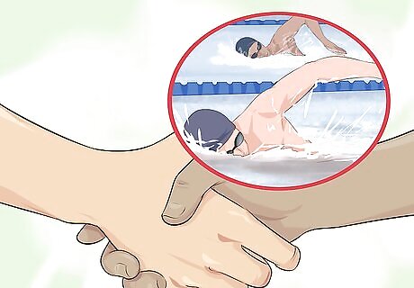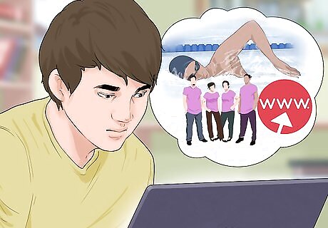 Join a group of swimmers. It’s easier to stay motivated when you’re surrounded by other motivated people. Many recreational centers and health clubs have group classes for swimming. This is an excellent option for beginners because it removes the unknown factor. The swimming instructor will help you perfect your form and make sure you’re improving at a good pace. Many classes can be found online. Do a quick search to see if there’s anything offered in your area. If you can’t find anything online, visit your local recreational center and ask a pool employee for help.