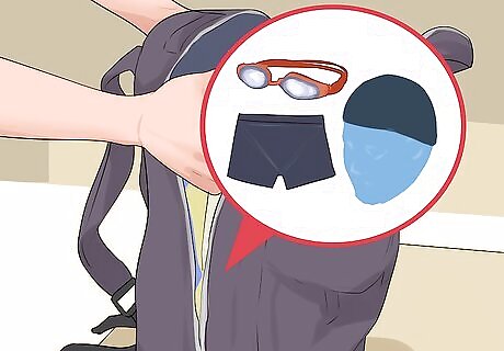 Find a natural water source. Depending on where you live there may be natural water sources that you could use for swimming. These “water holes” don’t have lanes or convenient pool edges on which to place towels and stopwatches. However, if you enjoy being outside and you don’t have spare funds for a gym membership, this could be a relaxing and beautiful way to start your day. Purchase a pair of water shoes to wear when swimming in a water hole. Otherwise, you risk cutting yourself on a sharp piece of rock or glass. Make sure you’re swimming in clean fresh water. Don’t swim in drainage areas or unclean water sources.