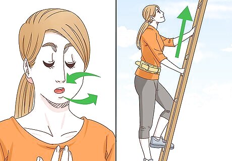 Take a deep breath and climb the ladder. Climbing the ladder can be the scariest part for some beginners. It's a long way to the top. The key is just to focus on each step and try not to look down. Just keep your attention on the next rung you have to climb until you reach the platform. If you're outside, the ladder may even sway a bit with the rig if it's windy. Don't worry, it's going to stay in place, but do make sure you have a good grip as you're climbing.