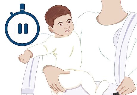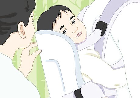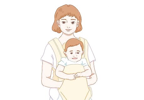 Take time to stop and rest along the trail as needed. As you’re hiking, make sure to rest when you feel tired. Stop in a safe spot and have some water and a snack, or just enjoy the scenery. This is also a good time to check on the baby to make sure their head is supported and that they’re secure in the carrier. When you stop, avoid taking off the carrier and setting it on the ground or a bench. The carrier can fall over due to the extra weight of the baby. If you’re going to take the carrier off, take the baby out of the carrier and hold them.