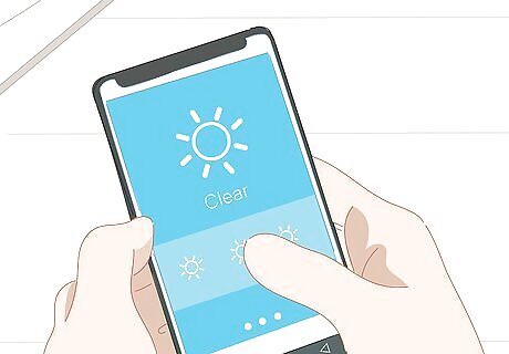 Monitor the weather closely using a weather app. The great outdoors can be very unpredictable, and even a minor change in temperature or a random rainstorm can make your hike a lot more difficult. Keep a close eye on the weather in the hours leading up to the hike, and plan accordingly. If the weather is supposed to be bad, don’t take your baby on the hike. If the weather begins to change during your hike, it’s best to turn around and make your way back to a safe spot as soon as possible. Even if it’s a false alarm, it’s better to be safe than get caught in a dangerous storm.
