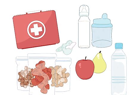 Make sure the everyone on the hike has enough food and water. Depending on the length of your hike, you might need a few different snacks for yourself, like granola, fruit, or protein bars. Be sure to include ample water for yourself and the baby, and pack small snacks and a few jars of food for the baby as well. This is especially important if you’re breastfeeding, which uses a lot of your body’s energy for producing milk. Be sure to bring enough food to keep your energy up, and pack an extra empty bottle just for water for the baby. If you aren’t breastfeeding, try to pack powdered formula, which tends to be lighter and easier to pack.