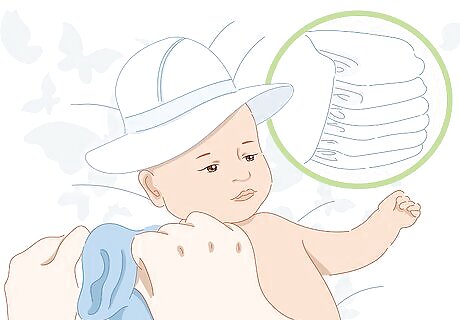 Dress yourself and the baby in clothes that are appropriate for the weather. Even if it’s warm outside, dress your baby in a long-sleeve shirt, long cotton pants, and a wide-brimmed hat to protect them from the sun. Dress in your normal hiking clothes, and be sure to prepare for the weather by taking a jacket or spare t-shirt just in case. Wear sturdy hiking shoes or sneakers. Don’t forget to bring extra diapers for the baby! Chances are, you’ll have to change them on the hike if your trip is longer than an hour or so. At the very least, you may need to change them before and after the hike. Try to avoid putting sunblock or bug repellent on babies that are younger than 6 months. It’s best to rely on clothing for protection from the elements.