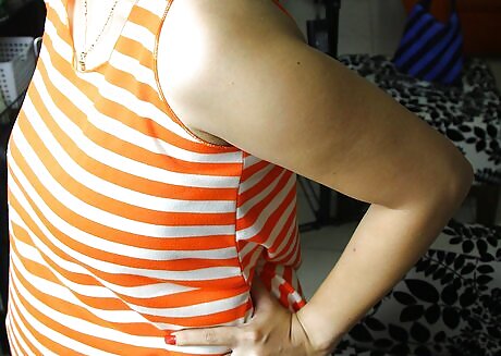 Elongate your torso and angle body: The classic model s pose is to arrange your body at a 45 degree angle to the camera with one foot in front of the other and one shoulder closer to the camera than the other. With hips squared, turn your upper body straight toward the camera, creating a slight twist in the torso. Pretend there is a string connected to the top of your head, and it is pulling you upward and taller. Suck in your belly without drawing air into your torso and position your arms on your hips or down to your sides with a little space between your body. These movements together will give the illusion of a much thinner waist.