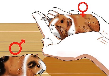 Keep the mother guinea pig away from male guinea pigs. Although your mother guinea pig may feel exhausted after giving birth, her body will already be ready to become pregnant again. If you have adult male guinea pigs, keep them away from her to prevent back-to-back pregnancies. Since guinea pigs don’t take long to reach sexual maturity, you will also have to keep the male pups away from her as well. Immediately after nursing, you will need to move the male pups to their own cage to prevent them from trying to impregnate their own mother.