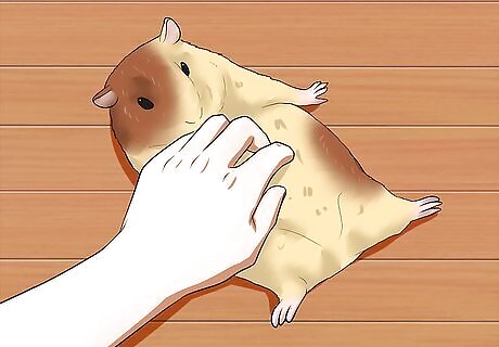 Handle the pups. It is okay to start handling the pups soon after they are born — as long as you don’t interfere with the mother guinea pig’s motherly duties (e.g. licking the pups, eating the placenta, etc). Use two hands to handle the pups: one to support the front end, and one to support the back end. Hold the pup close to your chest and talk to it in a soothing voice. The pups may be a bit squirmy the first time you pick them up. It isn’t used to being held, and may miss mommy. Gently lower the pup back into the cage when it starts to squirm. Early and frequent handling will help socialize the pups and get them comfortable with the human touch. Handle the pups only when they are awake and not nursing.