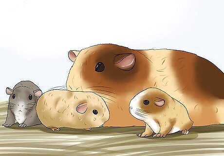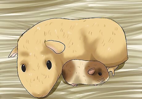 Check the size of the mother guinea pig’s cage. On her own, the mother guinea pig needs a cage that is at least 7.5 square feet. Now that she has pups, she will need a slightly larger cage — at least 8 square feet. Visit your local pet store if you need to purchase a larger cage.