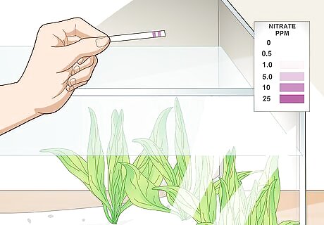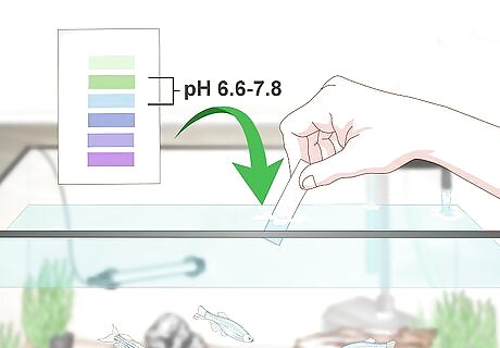 Test the pH levels weekly. Get a water testing kit and follow the directions to collect and measure the pH present in your tank. Make sure that your water falls within an acceptable range, for freshwater fish this is usually between 6.6 and 8. If your pH is too low, add crushed coral to the filter. If it's too high, add peat moss to the filter, or driftwood to the tank. These will tint the water slightly yellow, but it is completely safe for your fish.