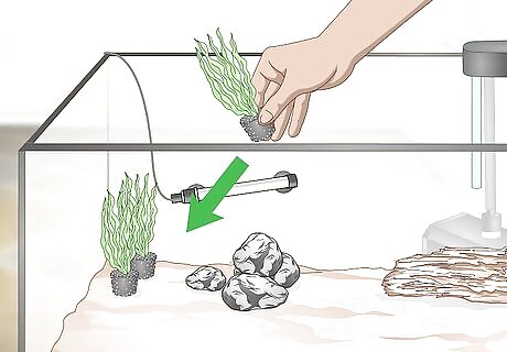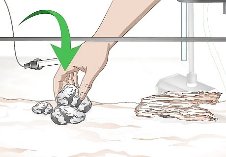 Add in your substrate. A good rule of thumb is that you’ll need one pound of sand, rock, or gravel per one gallon of water in your tank. Before placing your substrate in your tank, rinse it off thoroughly with tap water to remove any dust. Then, place the substrate gently in your tank with just a slight slope towards the front.