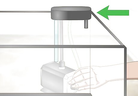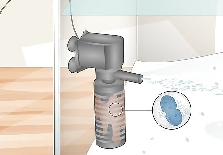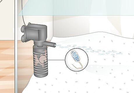 Install the filtration system. A filter will keep your water clean and remove many pollutants, such as fecal matter. There are mechanical filters that catch debris in traps that can be emptied. There are chemical filters that absorb pollutants with activated carbon. And, there are biological filters that use active bacteria to balance the chemicals in the water. A mechanical filter is generally the best option for a beginner, as they are fairly basic. Some filters should be placed under the gravel in your tank, whereas others hang from the back of your tank. There are also canister filters, which go inside the tank. Only clean the first filter media, near the back of the filter. It only needs cleaning if it's full of debris. Otherwise DO NOT clean the filter! This will cause ammonia and nitrite spikes and could kill your fish. The filter media will grow beneficial brown bacteria on it, which removes toxic chemicals from the fish waste. It is essential to keeping your fish alive.