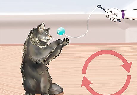 Keep your Maine Coon active. Maine Coon's need a lot of exercise for their health due to their big size. Some Maine Coons may have a tendency to stay on the couch during the day, so take steps to make your Maine Coon cat healthy and happy. You should provide cat perches and trees in your home so your Maine Coon can get exercise when you're not there. Maine Coons also enjoy interactive play. You should buy toys, like string or fishing pole toys, and play with your Maine Coon each day. Maine Coons are very friendly animals and will be eager to play with any household member.