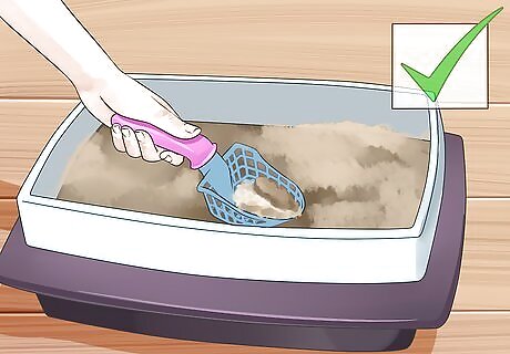 Make sure you maintain a clean litter box. A clean litter box is important to any cat. Maine Coons in particular, due to their long hair, require a clean litter box. Debris from litter can easily get caught in their fur, so clean your litter box daily. Each day, scoop any feces or clumps of urine out of the litter box and add a small amount of fresh litter. Swap the litter out completely once every two to three weeks. When you do so, make sure to scrub out the inside of the box and let it dry before replacing the litter.