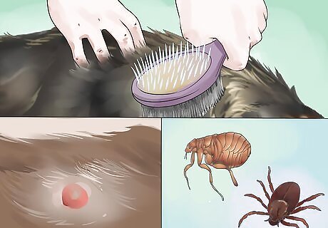 Check for injuries when grooming. Grooming is an excellent time to check for any unusual changes in your cat's body. When brushing your Maine Coon, run your hands along your Maine Coon's body to check for injuries or unusual bumps or lumps. You should also look for common pests, like fleas and ticks. If you notice any unusual changes in your Maine Coon's coat, see a veterinarian for evaluation.