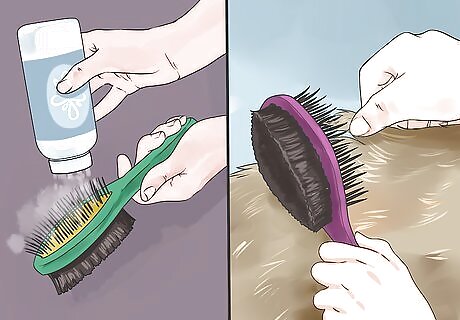 Deal with knots carefully. You may see knots or mats in your Maine Coon's fur. This is common with long-haired cats. If you see a mat or knot, it can easily be addressed with talcum powder. Sprinkle a small amount of talcum powder on a brush or mat. Then, use your fingers to gently separate the fur.
