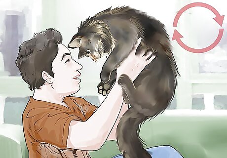 Monitor your Maine Coon's interaction with children. Maine Coons, due to their friendly demeanor, generally do well with young children. However, interaction should be supervised. Maine Coons are tolerant of children, as long as kids are taught to handle them gently. Encourage your kids to treat your cat with respect. Let them know they should only handle your cat when it comes to them and should not attempt to grab or restrain a Maine Coon. Young children may sometimes try to dress up an animal, or place it in a toy like a toy high chair or stroller. Maine Coons are more tolerant of this behavior than many house cats, but you should still keep an eye on your kids when they play with your Maine Coon. Make sure the cat does not seem aggressive or frightened during play.