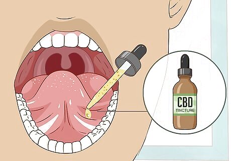 Use a CBD oil tincture for fast all-over post-workout relief. You might choose a CBD tincture if you want quick, total body relief from pain and inflammation. CBD tinctures take effect in about 15-30 minutes if they work for you. To use the tincture, measure out about 1-2 drops using the eyedropper that came with your CBD. Then, squeeze the drops under your tongue and hold them there for about 30 seconds before swallowing. If you’re using a tincture that comes in a spray bottle, apply 1 spritz to the inside of each cheek. You can purchase tinctures in different flavors if you prefer. Look for a CBD oil tincture at a drugstore, dispensary, or online.Variation: If the taste bothers you, mix 1-2 drops of the tincture into a glass of water or another non-alcoholic beverage. Drink the entire glass as fast as you can. Expect to feel the effects of the CBD in about 30 minutes.