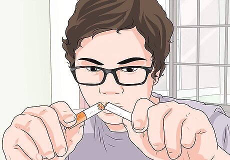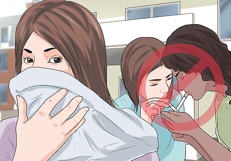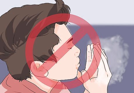 Avoid all contact with secondhand smoke. While not smoking is a great start, you should also avoid all contact with sources or secondhand smoke, such as in bars, casinos, and other socially acceptable environments for smoking. Nonsmokers who frequently inhale secondhand smoke have a 20 percent higher risk of developing lung cancer than nonsmokers who never encounter it. Though studies are new, many experts believe that people, especially babies and children, should also stay away from third hand smoke. This is the residual toxins and chemical compounds that stick to clothing, hair, carpet, walls, etc. even after a cigarette has been extinguished. The lingering smell of a cigarette even after cigarette smoke has dissipated is the telltale sign of secondhand smoke.