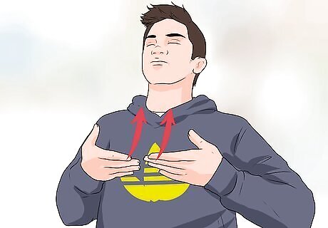 Breathe deeply more often. The act of breathing supplies oxygen to your entire body. Breathing deeply uses the entire capacity of your lungs to oxygenate blood. Though normal breathing levels aren’t unhealthy, deep breathing reaches the peak level of oxygen flowing through your body. Pay special attention to your diaphragm while slowly inhaling and exhaling full deep breaths. Feel your diaphragm lowering while you inhale and exhale fully until you feel your stomach muscles tighten and your diaphragm lift. Try this easy breathing exercise: Take a deep breath in through your nose, then exhale 2-4 times longer than you inhale slowly out of your mouth with pursed lips, like you're blowing out a candle. Repeat 3 times.