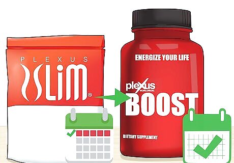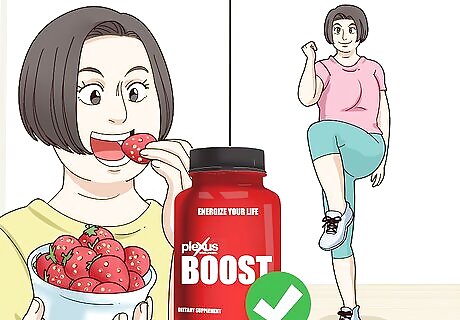 Take Plexus Boost in conjunction with a balanced diet and exercise plan. Like most weight loss supplements, Plexus Boost works best when coupled with a healthy diet and exercise plan. Talk to your doctor or a certified dietitian about the nutritional plan that is right for you. In general, you should aim for a diet that balances fats, proteins, and carbohydrates. Aim to eat more fresh fruits and vegetables, whole grains, unprocessed foods, and healthy, unsaturated fats. You should also try to get at least 30 minutes of moderately vigorous cardiovascular exercise at least 5 days a week.