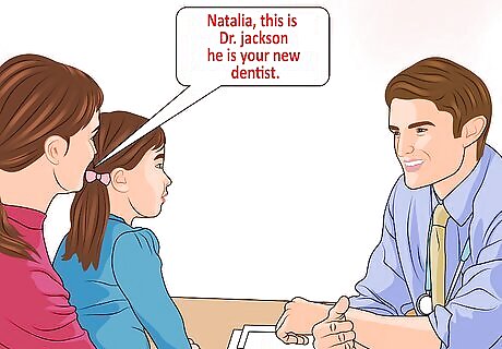 Introduce your child to the dentist. Formally introduce your child, and allow the dentist to take over. Before getting started, they will probably explain how all the tools work to make your child feel comfortable. Try saying, “Natalie, this is Dr. Jackson. She is your new dentist!”