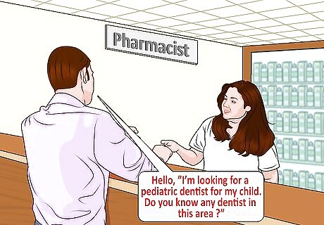 Talk to your local pharmacist. A pharmacy in your area is likely to have the contact information for many doctors. Ask for a few contacts and call their offices. After you talk to the receptionist about their location and hours you can determine which one might be most convenient for you. Approach the pharmacist and say, “Hello, I’m looking for a pediatric dentist for my child. Would you be able to give me the contact information for two or three dentists in this area?”