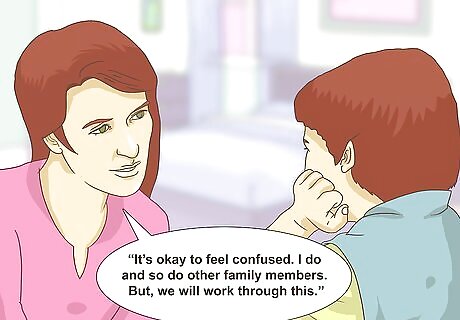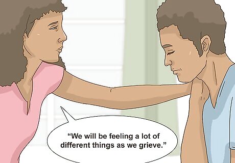 Talk about grieving. There are emotions that are common when you experience a loss due to a tragedy such as a suicide. Understanding what you and your family may feel can help you cope as you grieve. When you talk about suicide within the family, talk about these feelings and how you will handle them as a family. Talk about feeling denial, shock, anger, guilt, regret, resentment, shame, and confusion. For instance, you might say something such as, “We will be feeling a lot of different things as we grieve.” Bring up ways that the family can work through the grief process together. For example, you could say, “How can we help each work through the stages of grief?”