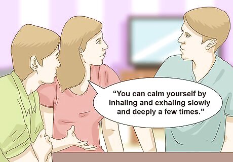 Explain the benefits of coping techniques. Talk with family members about relaxation and stress relieving strategies like meditation, deep breathing, and journaling. Sharing information about these coping techniques can help the family deal with suicide better. Tell them about reducing stress and anxiety by using mindfulness strategies to help cope with suicide. You could say, “Mindfulness meditation helps you focus on the here and now.” Talk about using deep breathing techniques. For example, you might tell them, “You can calm yourself by inhaling and exhaling slowly and deeply a few times.” Explain to the family how using a journal to express thoughts and emotions can help you manage your feelings and stress. Try saying, “Writing in a journal can be a huge stress reliever!” Encourage people to start expressing their feelings openly. Remember that it is better to be open about your feelings than to suppress them.