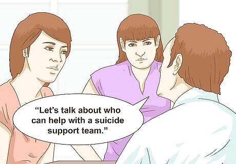 Learn to listen after the talk. Once you and your family have discussed these measures, remember that you will have to be vigilant from now on. Often, people start talking about suicide before they do it, or they might discuss how they feel as if they are hopeless, pained, or a burden to others. In these cases, encourage them to get professional help or call a crisis hotline. Talk about making a list of people that can form a support team to check on the suicidal person. For example, you might say, “Let’s talk about who can help with a suicide support team.”