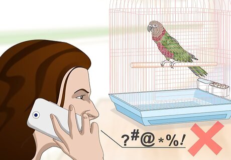 Watch what you say around the parrot. Parrots are astute listeners and good mimics. Watch the words you say aloud around your Hawk-headed parrot as you do not want it to imitate any bad or unsavory words you might say. You should also inform visitors to watch their language around the parrot so it does not pick up any bad words. Parrots easily pick up words said with great enthusiasm or feeling, so it can be very easy for them to pick up things like swearing.