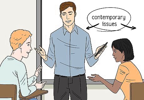 Encourage civil and constructive discussions in the classroom. When talking about potentially difficult or divisive historical topics, it is important that the students leave the class feeling as though their opinions and perspectives were heard and respected. While students are bound to disagree with one another, as the teacher, you can set some ground rules that will ensure that student discussions are constructive rather than hurtful. The way that you do this will depend largely on the topic, class size, and age of the students. Here are a few general suggestions: Encourage students to back up their statements and opinions with concrete evidence from the class. Have a conversation about class discussions at the beginning of the semester. This will give you an opportunity to make clear to the students that while they may disagree, they should listen to one another without judgement. Limit discussions to the historical context of a topic. Topics such as race, gender, and class can easily be tied to the present. While this is not necessarily a bad thing, if you find that the conversation is getting out of hand, encourage the students to halt any contemporary commentary and limit their comments to those specifically relevant to the historical significance of the topic.