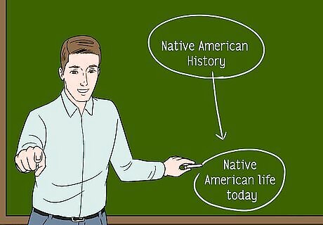 Make your subject relatable by connecting it to the present. When teaching history at any level, try to make it clear to the students on the first day of class why they should care about the subject. One of the best ways to do this is to make clear connections to the present. Students are much more likely to care about history if they understand how it is relevant to their lives. For example, if you are teaching Native American history to middle or high school students, start the class with an exercise where the students write a paragraph on their understandings of Native American life today. You can then begin the lesson by demonstrating how certain U.S. policies and acts influenced how non-Native Americans have come to such understandings. A good way to make history relatable is to make connections to local history. For example, if you live in Atlanta and are teaching about the Civil War, spend some time talking about how the war impacted the local area. Doing so can help you grab the attention of students at any level.