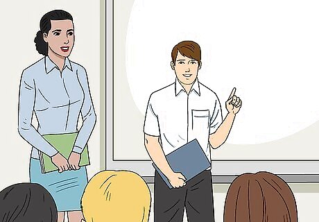 Let your students be the teacher from time to time. To ensure active participation in the class, give each of the students a topic at the beginning of the semester and have them each teach the class about their topics at various points during the semester. Knowing that they will be teaching the class will encourage them to actively engage with the course materials. Teaching their peers about their topic can also help build confidence, as well as improve their public speaking and presentation skills. If you are teaching middle or high school students, you may want to limit their presentation time to 10 or 15 minutes. College or graduate students, however, will likely be able to handle the responsibility of teaching the whole class period.