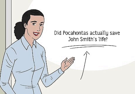 Get creative with a history detective-style assignment. To help students learn about history, think critically about primary resources, and enjoy their time in class, pick a historical “mystery” relevant to your subject and have students conduct research to try and solve it. The students will then use their research to come up with an informed theory of what happened and present it to the class. For example, if you are teaching about European colonization, you could assign the students to investigate the Lost Colony at Roanoke. Or, for a myth-busters type assignment, you could have the students investigate this question: Did Pocahontas actually save John Smith’s life? These types of assignments work particularly well with younger students. It can be difficult to grab and hold the attention of elementary and middle school students. With a detective-style assignment though, younger students can have fun while engaging with the material.