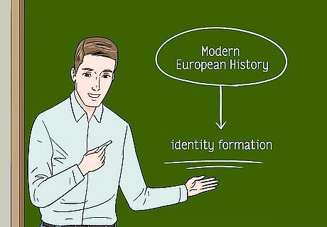 Select a few major themes to focus on. When developing your history class curriculum, pick just a few major themes and/or topics to focus on. Rather than trying to cover as much as possible, focus on ways you can foster useful skills. While you may have to adhere to some institutional requirements, it’s impossible for you to teach your students everything about your subject. By diving deeper into just a few themes or topics, students will have more opportunities to think critically about and understand the past. For example, if you are teaching modern European history for college students, one of the themes of the class could be identity formation. Then, you can discuss the ways in which major historical periods and events, such as the Reformation and World War II, both altered and informed how Europeans identified themselves over time. Instead of trying to cover everything on your topic, focusing on just a few topics or themes lets you clearly demonstrate historical causes and effects, as well as change over time.