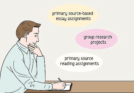 Focus on teaching transferable skills. In most cases, the students in your class will not be budding historians. Rather, most will be taking history to fulfill a curriculum requirement. To make the course worthwhile for all students, focus on crafting lectures, discussions, activities, and assignments that will help students build skills that are useful in other fields, and in life in general. For example, primary source-based essay assignments can help students learn to make an informed argument and use concrete evidence to support their position. History writing assignments can also help students enhance their writing skills. Group research projects, for example, can help students learn to collaborate with others and cooperate to present a finished project – something students will likely need to do in their careers later on. Primary source reading assignments help students think critically about what they read. This skill is useful for almost anyone who reads the news and gets conflicting information on various important topics.