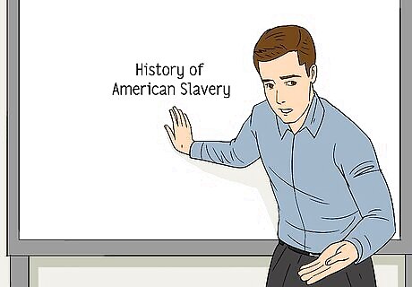 Address challenging topics and issues when relevant. No matter what historical subject you teach, you are bound to encounter topics that are difficult for you or some students to talk about. While it may be tempting to gloss over difficult subjects to avoid any uncomfortable or challenging discussions, it is important that you confront difficult histories to give students an understanding of how such issues came about and how they inform the present. While often difficult to approach and discuss with students, the history of American slavery, for example, is crucial to understanding contemporary issues with racism and American history at large. While it is important that you don’t shy away from difficult topics when teaching history, it is also important that you keep your students’ ages, capabilities, and prior knowledge of the subject in mind.