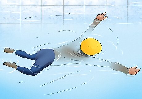 Teach your little one how to float on their back. Help your child shift onto their back, letting their head lean against your chest. Invite them to spread their arms out in “T” shape, and gradually move their head off your chest. Support their back with your hands, slowly removing your fingers until your little one is floating on their own. You’ll need to practice floating a lot before your child really gets the hang of it.