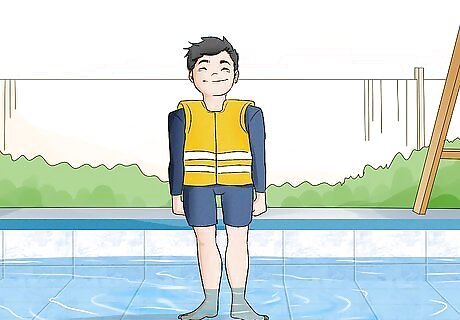 Offer your little one a life jacket for safety. Inflatable floaties and swimsuits aren’t actually that great—they can deflate pretty easily, which can be super dangerous. Instead, strap your child into a life jacket, which will provide a lot of extra support while they’re getting used to the water. Look for life jackets certified by an established organization, like the Coast Guard.