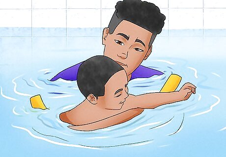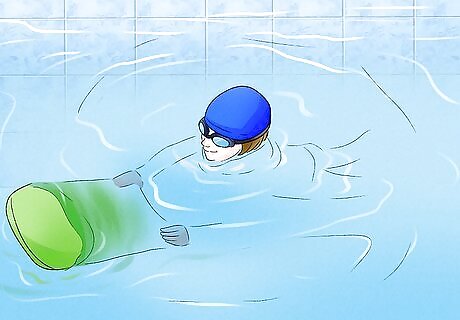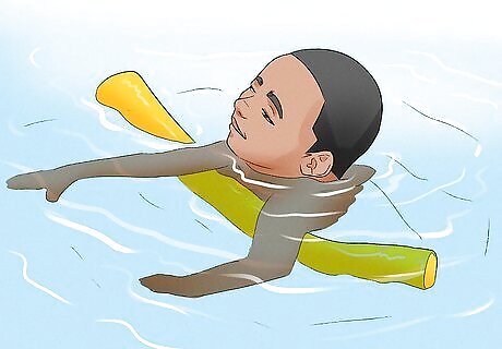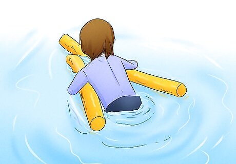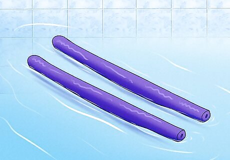 Place a pool noodle under your child’s arms. Guide your little one into the shallow end of the pool. Lift up their arms, and stick a pool noodle underneath—this will help them float on their own while they learn to tread water.