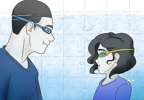 Wait until your child seems comfortable in the water. Dunking underwater for the first time is a big milestone, but you don’t want to rush your child into it. Spend time with your child in the water, and see how confident or nervous they feel. It can take a little time before your child feels ready. Provide with lots of support and encouragement whenever they’re in the water! You can always start simple, like teaching your child to hold their breath in the tub! Goggles and nose plugs might make dunking underwater a little less scary for your little one.