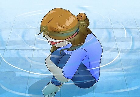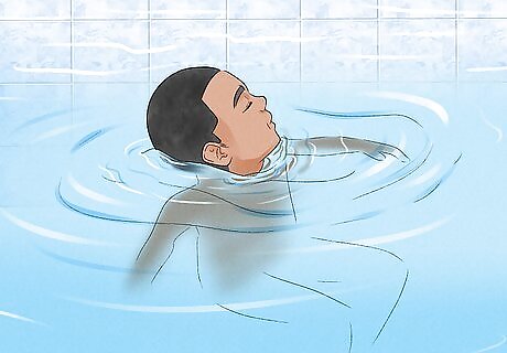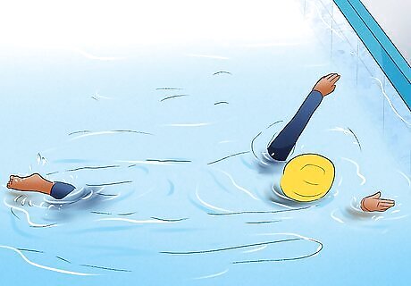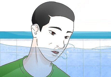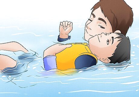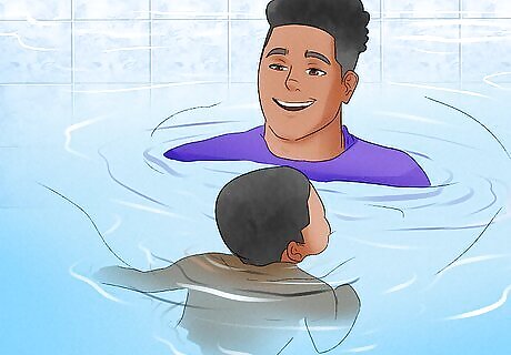 Encourage them to look up and turn in a circle. Point towards the sky or ceiling, and coax your child to look upwards. When they’re treading water, you don’t want their head sinking beneath the surface.