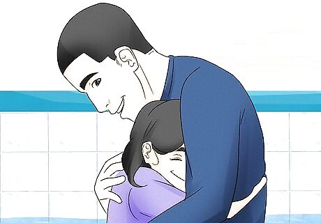 Shower your little one with lots of praise and reassurance. Dunking in the water can be really scary for some children, so let them know that you’re super proud of them, and that they did a great job. Offer tons of encouragement and reminders that they’re perfectly safe,