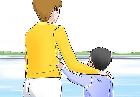 Remind your kiddos not to run and to stay close to you. Set a few firm ground rules with your little one before taking them to the water. Instruct them not to run near the edge of the water, and not to go into the water unless a trusted adult is nearby. For example, you can say something like, “Don’t get into the water until Mommy or Daddy says it's okay.” Never leave your little one near the water without supervising them.